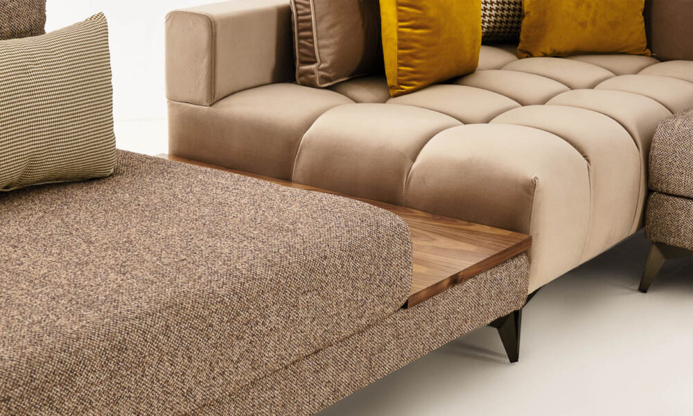 Découvrez en premier le nouveau salon contemporain dessiné avec soin et minutie . Fabriqué à la main, le gourmet est un fabuleux mélange de toile et de velours pour un look exceptionnel.