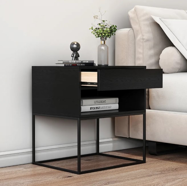 – Construit avec du bois manufacturé de haute qualité en noir et encadré de fondations en métal noir, petit mais formidable, il peut être utilisé de nombreuses manières, qu’il soit empilé en permanence avec une pile de livres et une collection débordante de tasses à café ou maintenu propre sans encombrement pour induisent la sérénité nocturne.